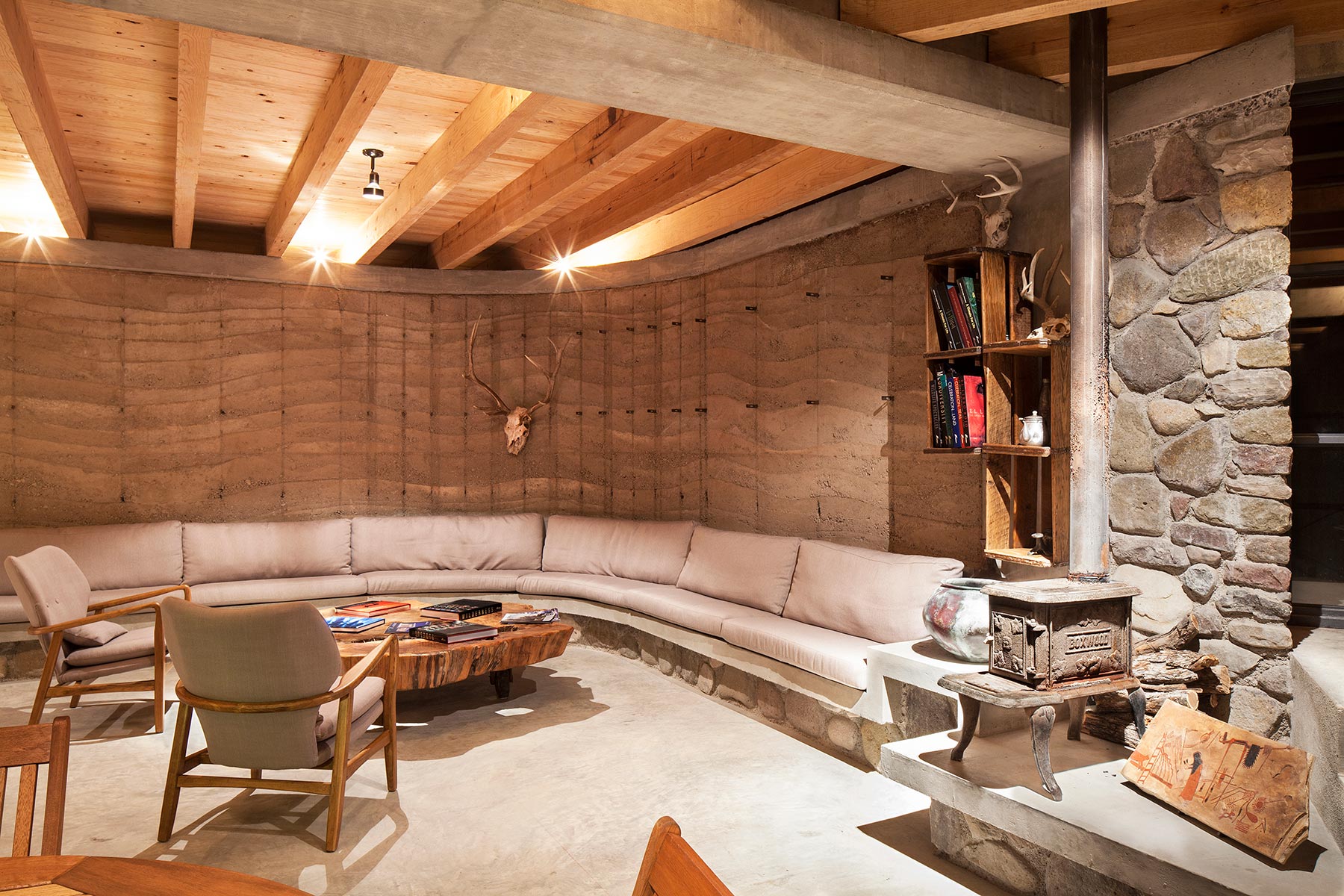“Se concibe como un refugio dentro de un ambiente salvaje, por lo que nos remontamos a los primeros lugares utilizados por el hombre como protección: las cuevas”, explica Kenji López, líder de Greenfield MX, joven despacho que ejecutó el proyecto.